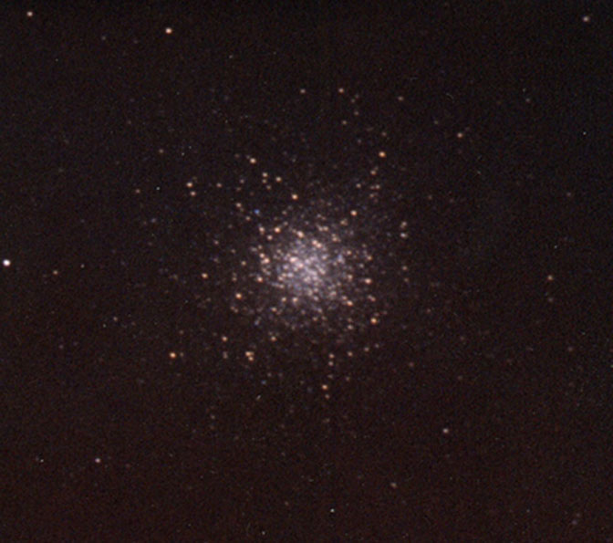DESCRIPTION: Discovered in 1714 by Edmond Halley, M13 is approximately 22,000 light years from earth, its diameter is roughly 150 light years across, and its magnitude is 5.8. This object can be viewed in North America during the Summer time, and is located in the western portion of the Hercules constellation. Because of it brightness, it can be seen if the location is very dark, and can be seen through a decent pair of binoculars.